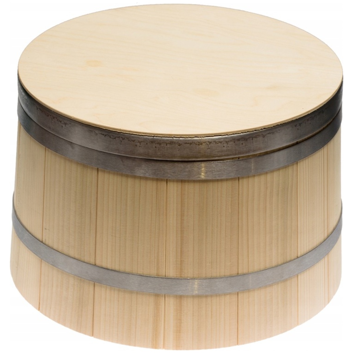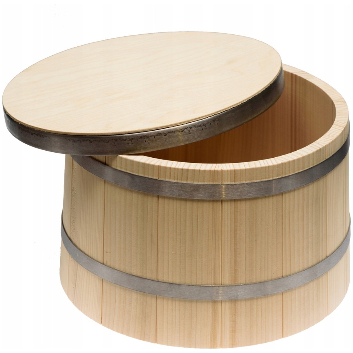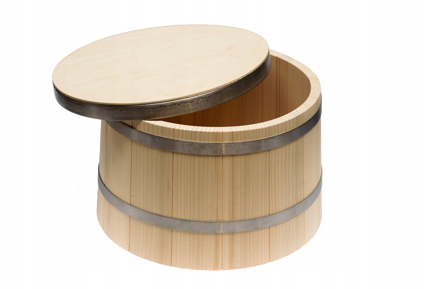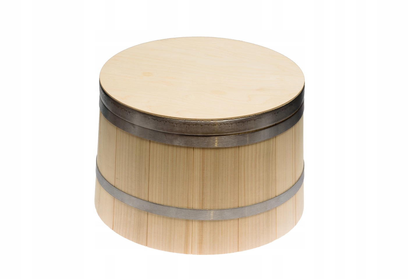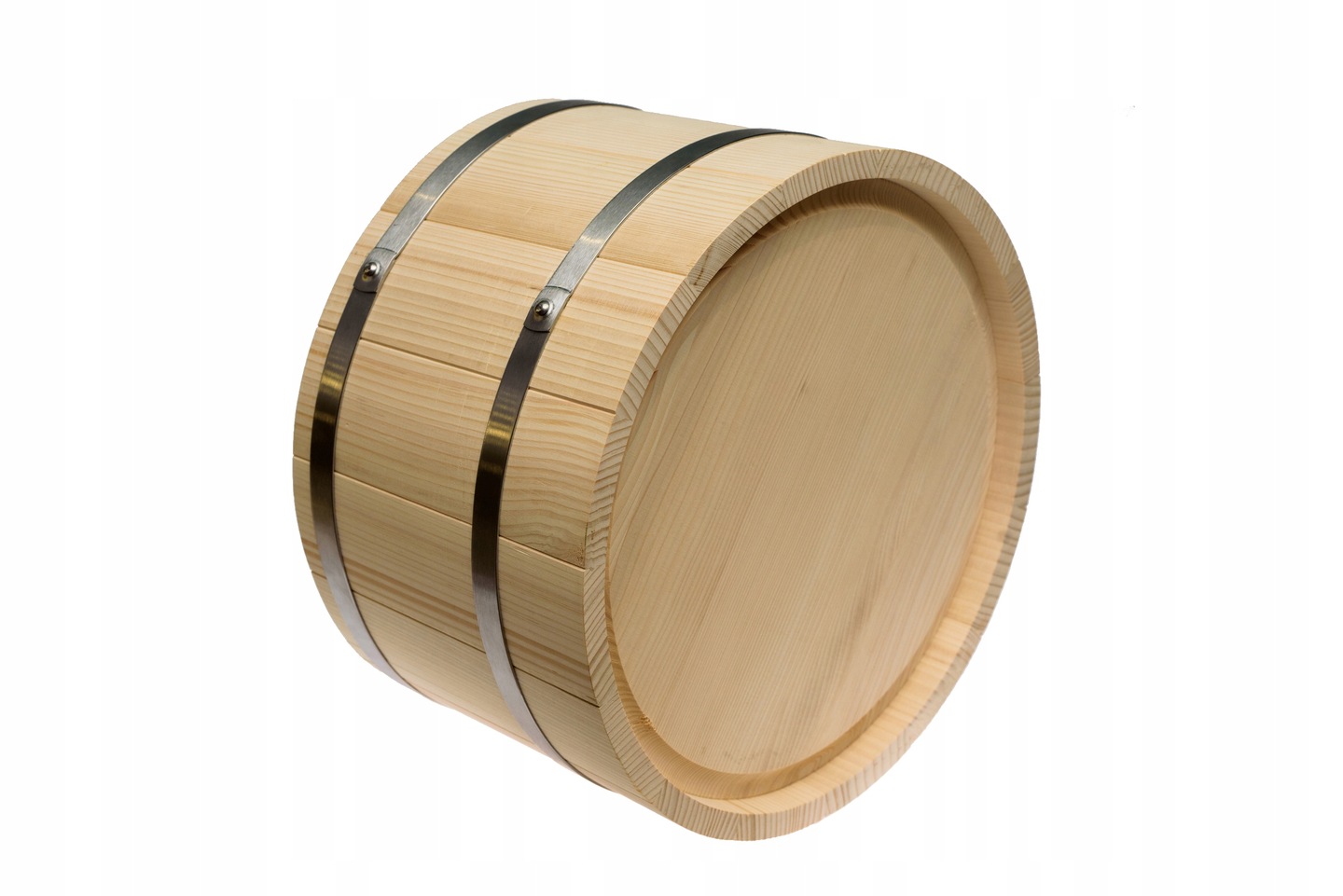 Solidna drewniana konstrukcja zapewnia optymalne warunki fermentacji, a tradycyjne stalowe obręcze gwarantują trwałość i stabilność naczynia.