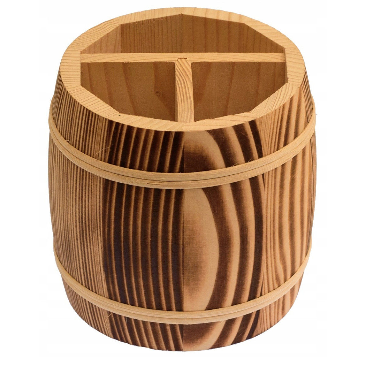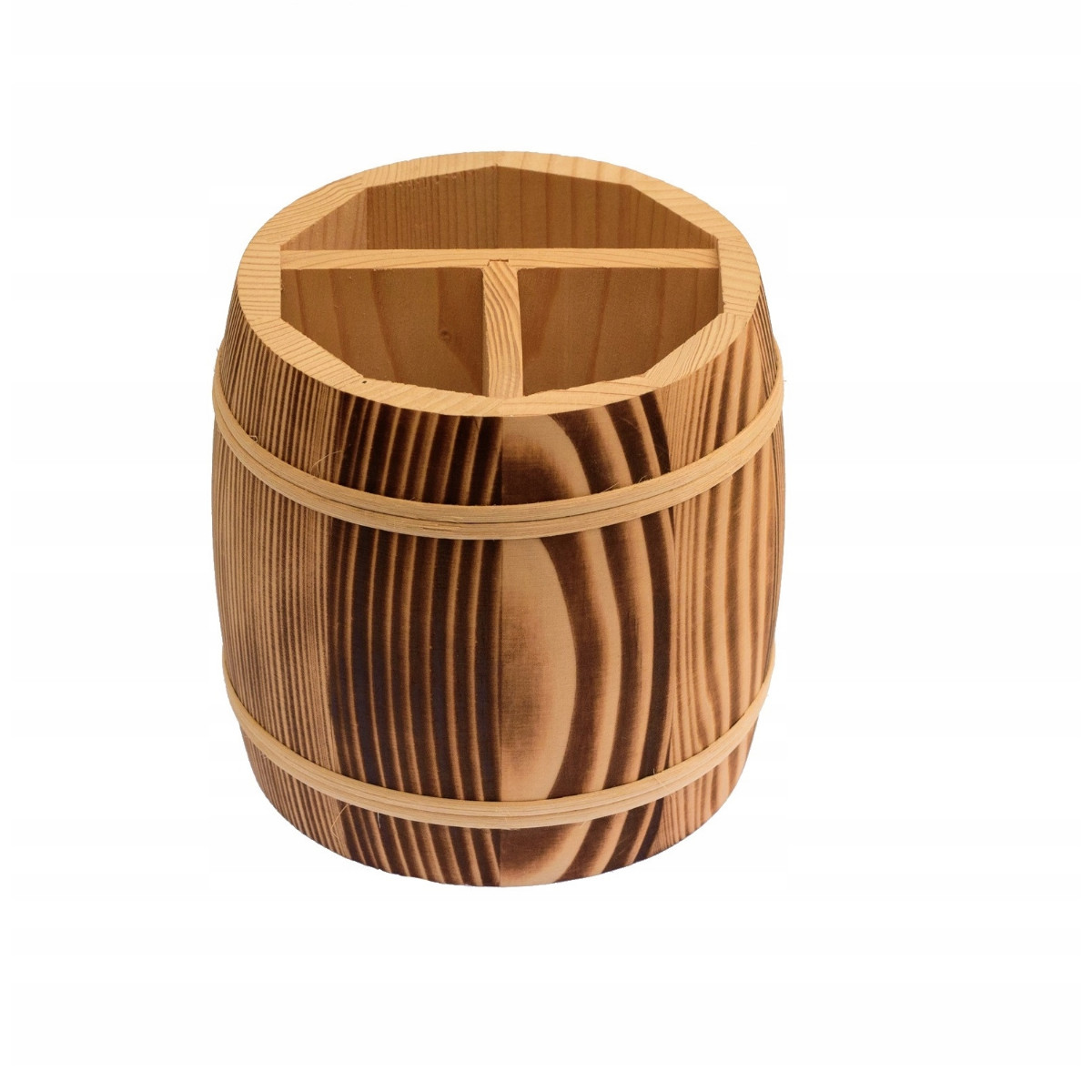 🍴🌲 Przedstawiamy naszą wyjątkową beczułkę na sztućce z drewna – solidny i stabilny pojemnik, który zmieści zarówno duże ilości sztućców drewnianych, jak i metalowych! Idealny do przechowywania zorganizowanych i łatwo dostępnych narzędzi kuchennych.