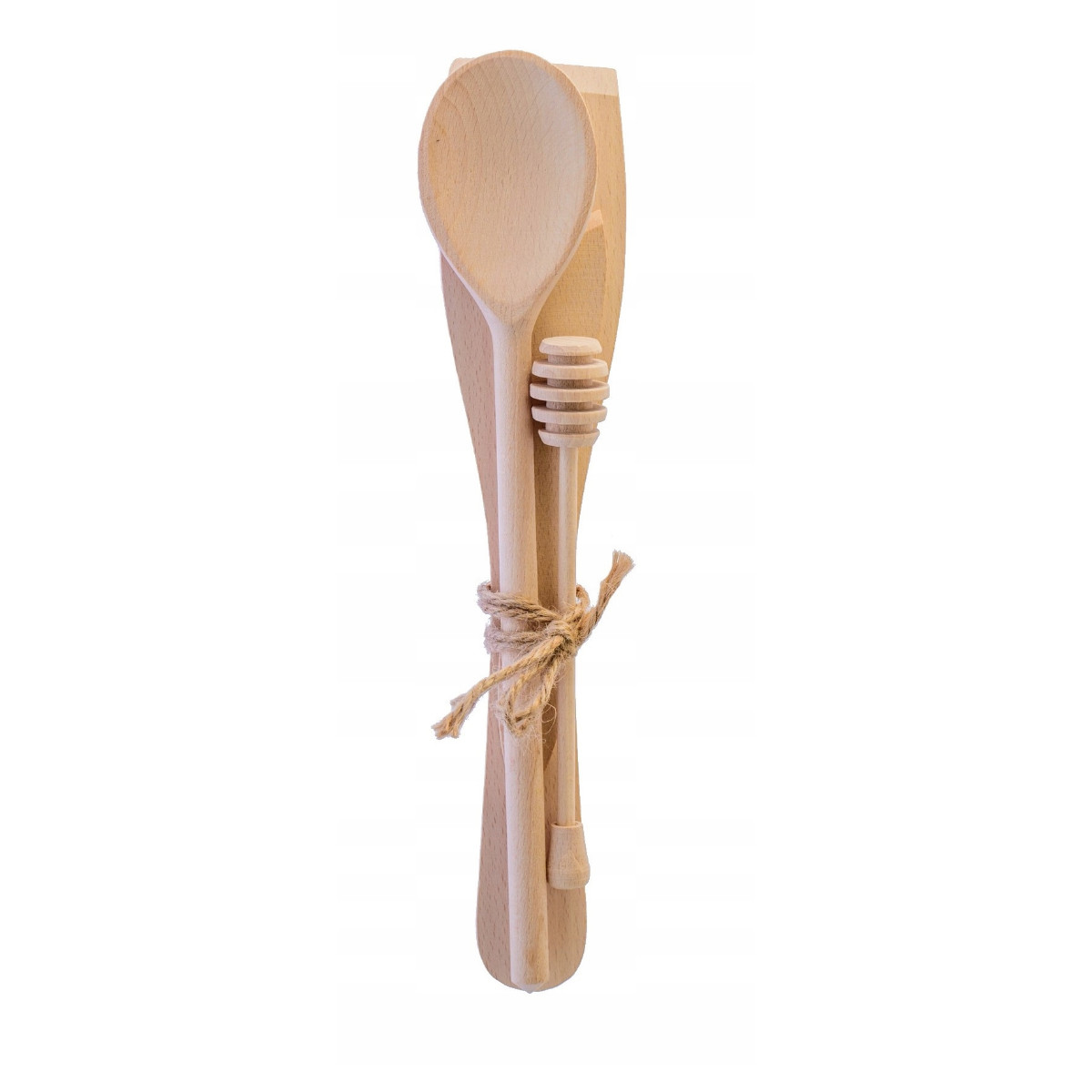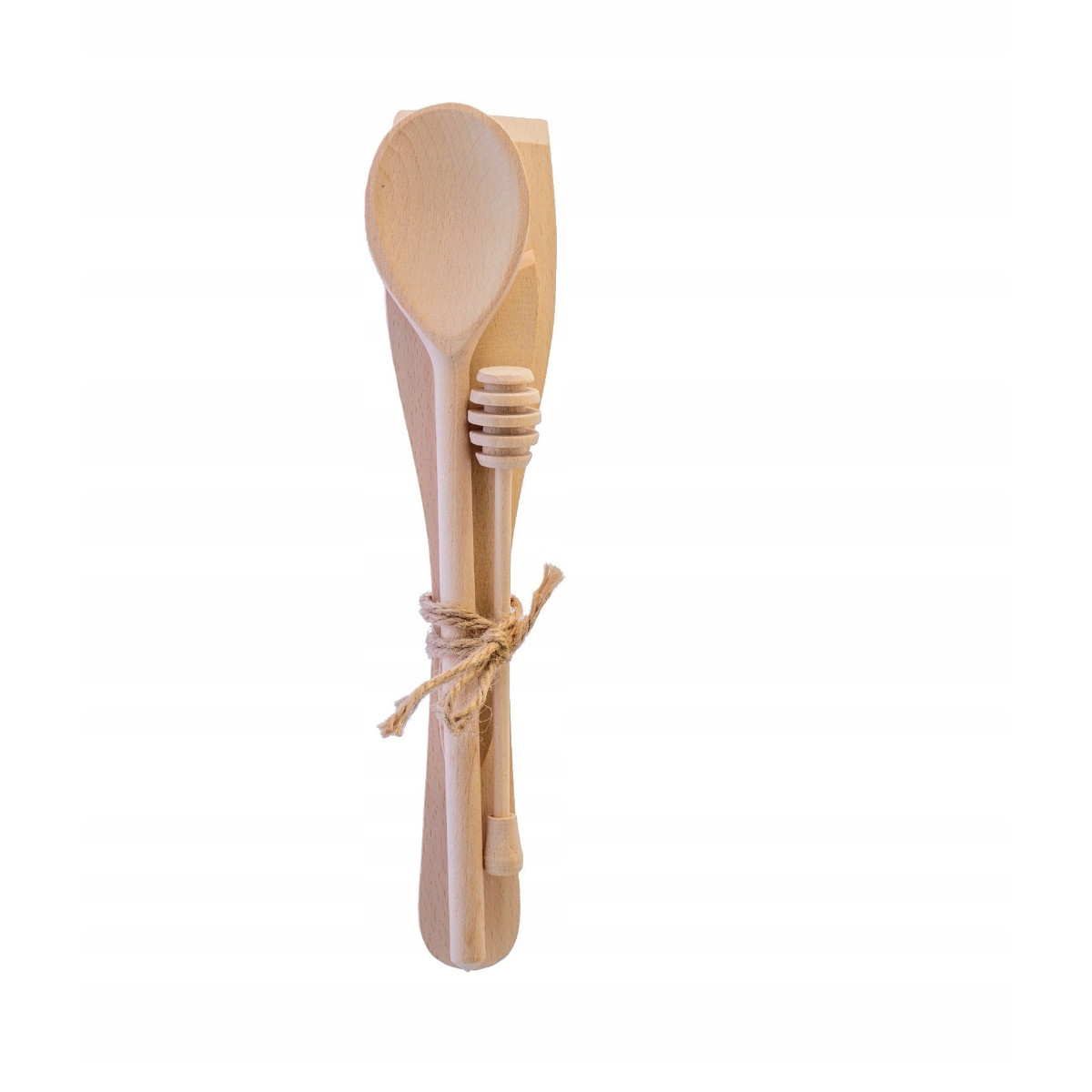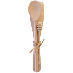 Przepasane sznurem, nasz komplet zawiera łopatkę, łyżkę, nożyk oraz nabierak do miodu – wszystko, czego potrzebujesz do kompletnej pracy w kuchni. Niezależnie od tego, czy gotujesz codzienne dania, czy też przygotowujesz wyjątkowe potrawy na specjalne okazje, nasze przybory sprawią, że proces stanie się łatwiejszy i bardziej przyjemny.
